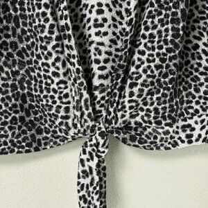 Chicos Tie Waist Open Front Cardigan Size 3 US XL Black Gray Animal Print