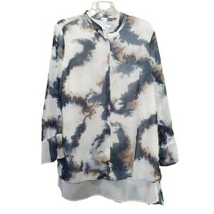 Chico's Tie-Dye High-Low Band Collar Chiffon Lined Button-Up Tunic Size 2.5 (14)