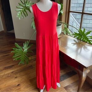 Chico’s Tiered Sleeveless Cotton Slub Red Maxi Dress size 4