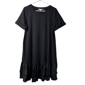 Chico’s Tiered T-Shirt Dress Black Size 1 Medium Knit Woven Contrast Hem