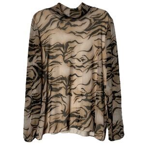 Chico’s Tiger Print Mesh Top Blouse Mock Neck Bishop Sleeves Sheer Lined 4 XXL
