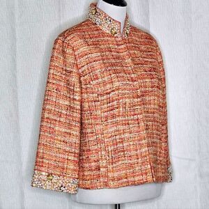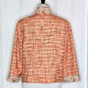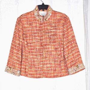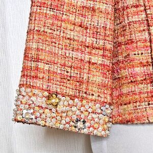 Chico's Timeless Tweed & Faux Pearls Orange & Pink Woven Blazer Jacket SZ Large