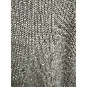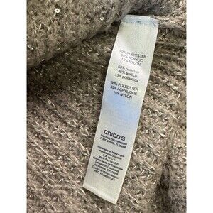 Chico’s Tonal Shine Sweater Size 1 Medium Taupe Tan Metallic Sequins Pullover