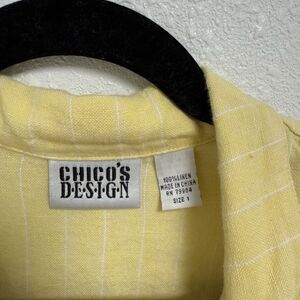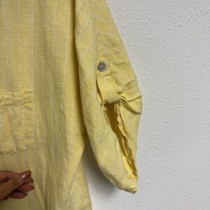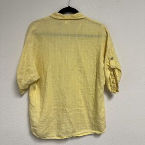 Chico's Top 1 Women's Medium Yellow 100% Linen Button-Front 3/4 Sleeve Shirt