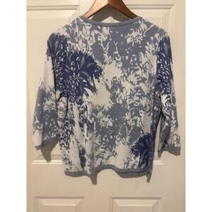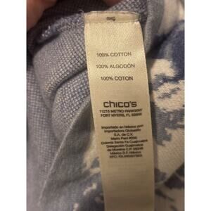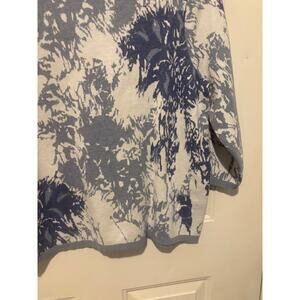 Chico's Top 100% Cotton Floral Printed Pullover 3/4 Sleeve Blue Blouse 2 Large