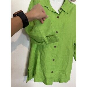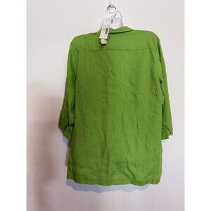 Chico's Top 2 Large No Iron 100% Linen Shirt Green Button Up 3/4 Sleeve New