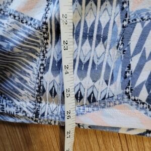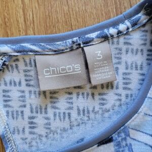 Chicos shirt womens XL. Blue and white patchwork pattern, round neck, open back, matching attached camisole. In excellent preowned condition.