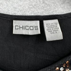 Chicos Top 3 (XL) Pullover Gauzy Sheer Black Elastic Waist Sequins Beaded Blouse
