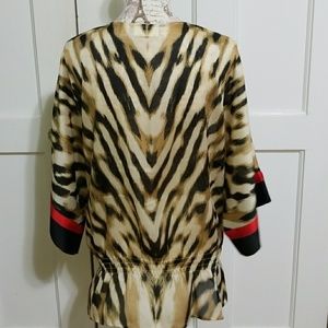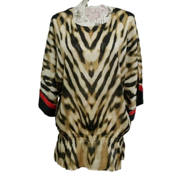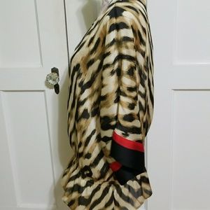 Excellent Condition Animal Like Print Wide Sleeves Elastic Gathering 97% Poly 3% Spandex Length 29 1/2" (4)