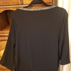 Never worn - jersey knit top with gold metallic stripe on neck and side of sleeves