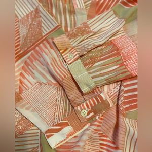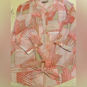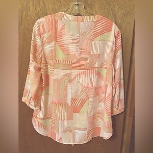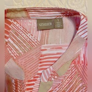 Chico’s (size 1) top. Pink and tan print. Button 3/4 sleeve. Excellent condition. Great for springtime