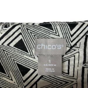 Chico’s Top Blouse Geometric Print Button Back Linen Women’s 1 M 8