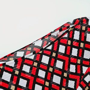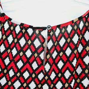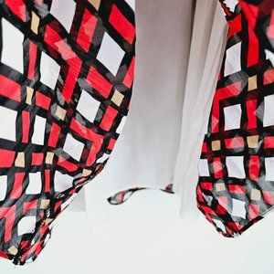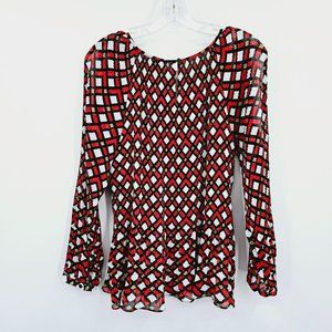 Chicos Top Geometric Patterned Cold Shoulder 1 M 8 Red Black Sheer Raglan Sleeve