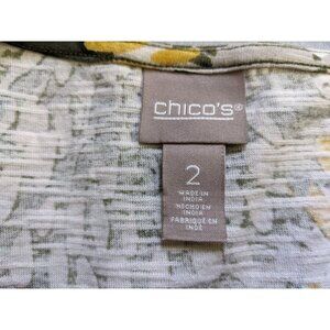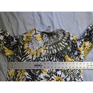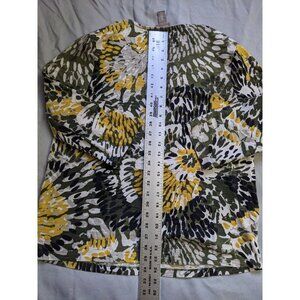 Chicos Top Green Yellow Floral Half Zip V Neck 3/4 Sleeve Womens Size M