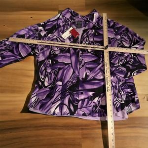 Chicos Top Jacket Ocean Leaves Purple with purple Under Shirt Womens Size 3