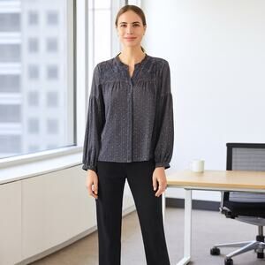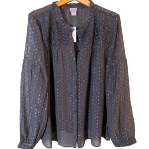 Chico's Top NWT Women's Sz 3 (XL) Embellished Cool Gray Metallic Pullover Sheer