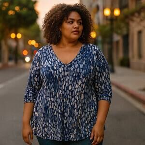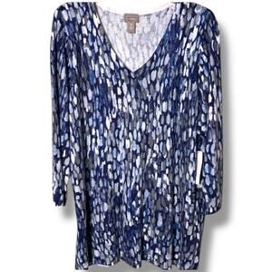 Chico's Top NWT Womens Sz 4 (2X) Blue Dusk Touch of Cashmere 3/4 Sleeve