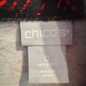 Chico's Top Red Mock Neck Back Zip High-Low Hem Floral Long Sleeve Sz 0 / Small