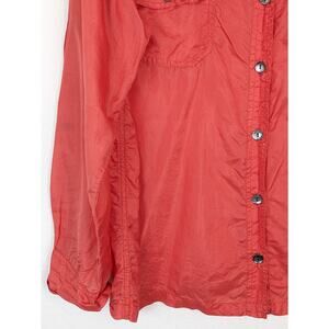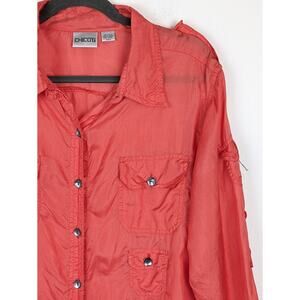 Chico's Top Silk Pocket Roll Tab Sleeve Coral Pink Orange Barbie Boho Size L