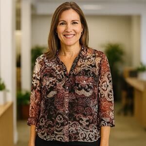Chico's Top Size 2 (Large) Button Up Chiffon Semi-Sheer Artsy Aztec Paisley