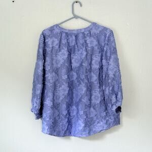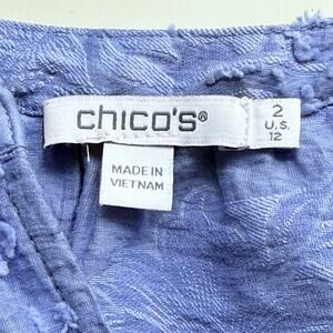 Chicos Top Size 2 Large US 12 Blue Floral Balloon Sleeves Preppy Boho Colorful