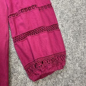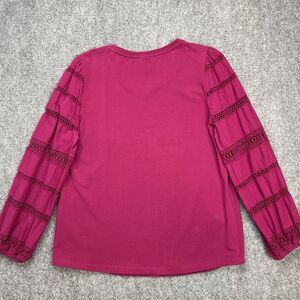 Chicos Top Size 2 Womens Large Lace Cut Out Sleeve Dark Pink Stretch Pullover.