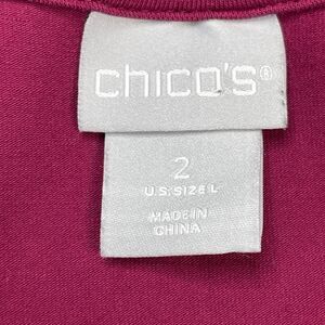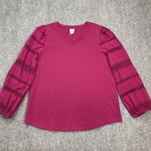 Chicos Top Size 2 Womens Large Lace Cut Out Sleeve Dark Pink Stretch Pullover