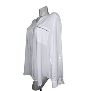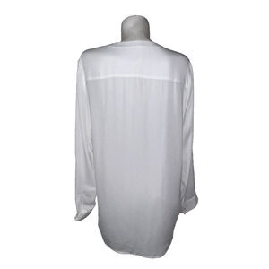 Chico's Top Size XL (3) Ivory Button Up Roll Tab LSleeve Solid Blouse Everyday