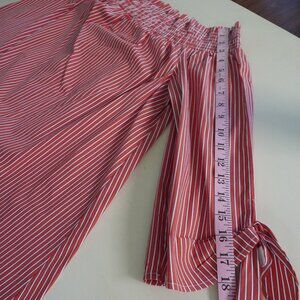 Chicos Top Striped Smocked Neckline Off the Shoulder Blouse