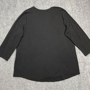 Chicos Top Sz 3 Womens XL Black Floral Embroidered Pima Cotton Blend 3/4 Sleeve