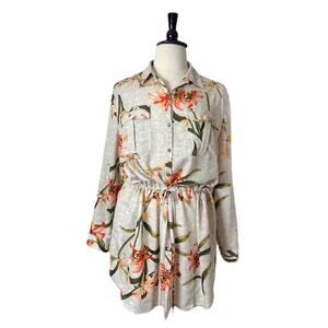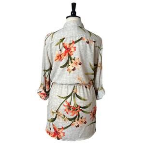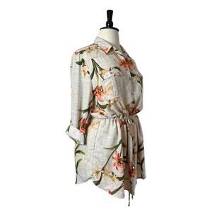 Chico’s Top Tunic Drawstring Waist Collared Tropical Floral Size 4 - Women’s XL