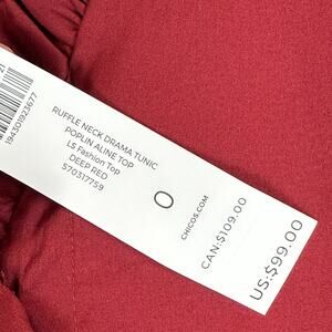 Chico's Top Women 0 US 4 Red Long Sleeve Ruffle Neck Tunic Poplin Button NWT