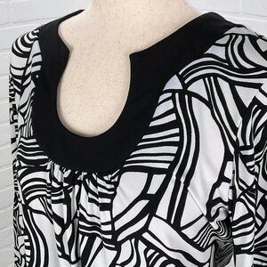Chicos Top Women 1 Medium 8 Black White Smock Stretch Flare Scoop Tunic USA