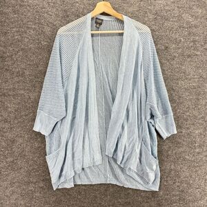 Chico's Top Women 2 Blue Crochet Travelers Open Front 3/4 Sleeve Pockets Rayon