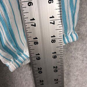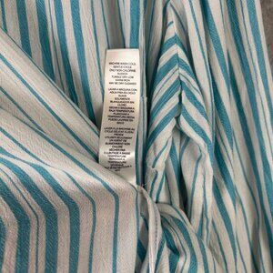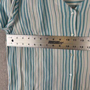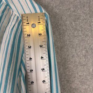 Chico's Top Women 2 White Blue Stripe 3/4 Sleeve Button Front Casual Blouse NWOT