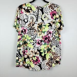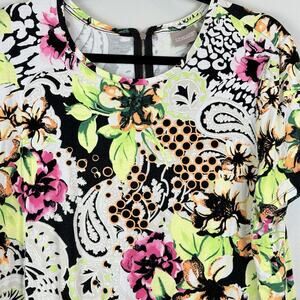 Chicos Top Women 3 US XL Multi Floral Blouse Colorful Stretchy Bloomcore Mature