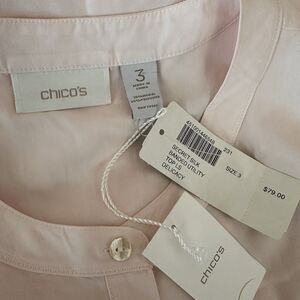 Chicos Top Women 3 XL Pink Secret Silk Branded Utility Long Sleeve NEW