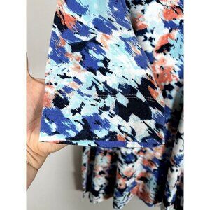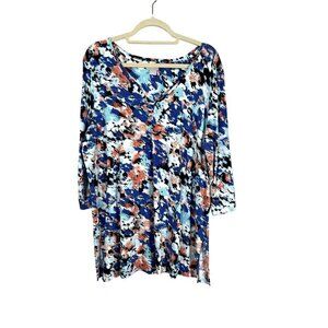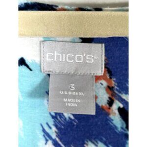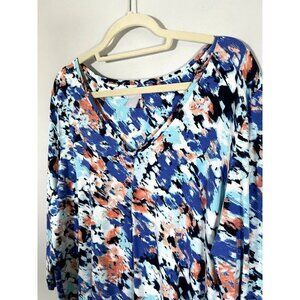Chicos Top Women XL Blue Floral Pullover Summer Neutral Feminine Watercolor 80s