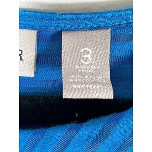 Chicos Top Women XL Blue Textured Tiered Striped Pullover Easywear 80s Neutral