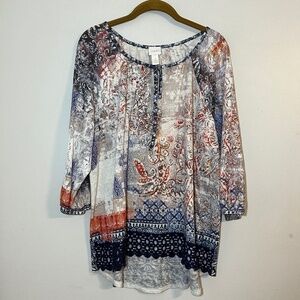 Chicos Top Women XL Orange Lace Floral Feminine Boho Western Concert Mature 80s
