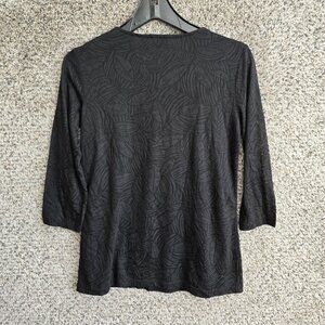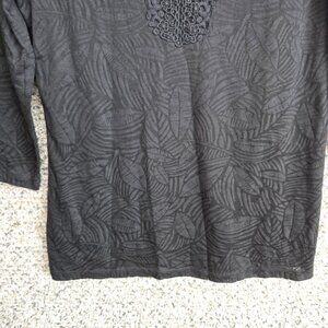 Chicos Top Womens 0 US Small Black Additions V-Neck Embroidered 3/4 Sleeve Tee