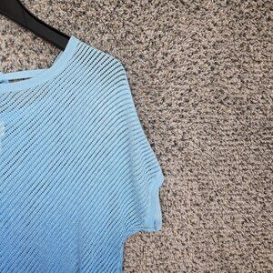 Chicos Top Womens 0 US Small Blue Ombre Open Knit Dolman Sleeve Tie Ladies