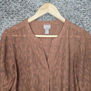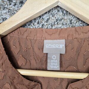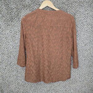 Chicos Top Womens 0 US Small Brown Textured V Neck 3/4 Sleeve Blouse Ladies