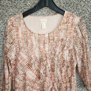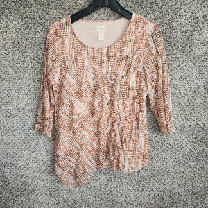 Chicos Top Womens 0 US Small Pink Ruffle Tiered Printed Mesh Lined Stretch