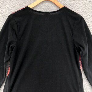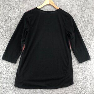Chicos Top Womens 0 US Small Red Multi Floral V Neck 3/4 Sleeve Tunic Pullover