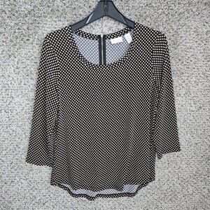 Chicos Top Womens 1 US Medium Black Polka Dot Scoop Neck Blouse Zip Ladies