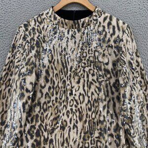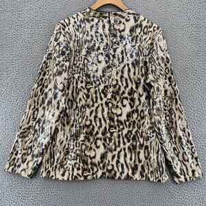 Chicos Top Womens 1 US Medium Ivory Cheetah Print Sequin Mock Neck Long Sleeve