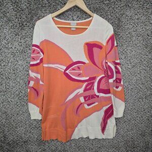 Chicos Top Womens 1 US Medium Orange Knit Tunic Scoop Neck Casual Ladies