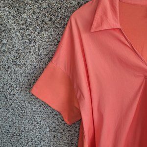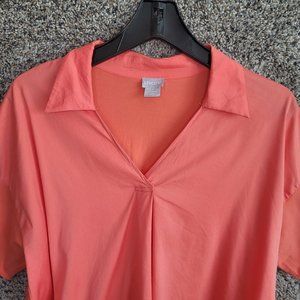 Chicos Top Womens 1 US Medium Peach Short Sleeve Collared Relaxed Fit Cotton