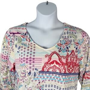 Chicos Top Womens 2 / US Large Multicolor Printed V-neck Relaxed 3/4 Sleeve